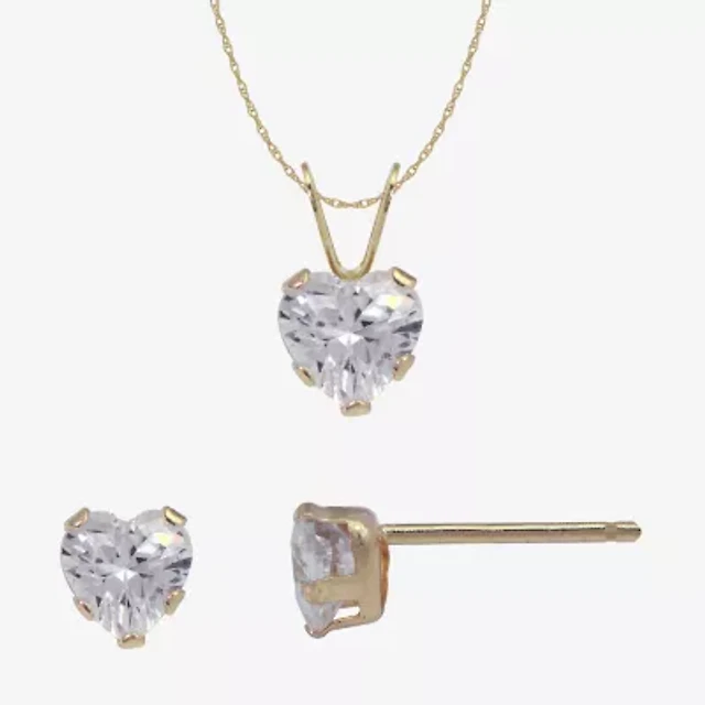 Womens Cubic Zirconia 10K Gold Heart 2-pc. Jewelry Set