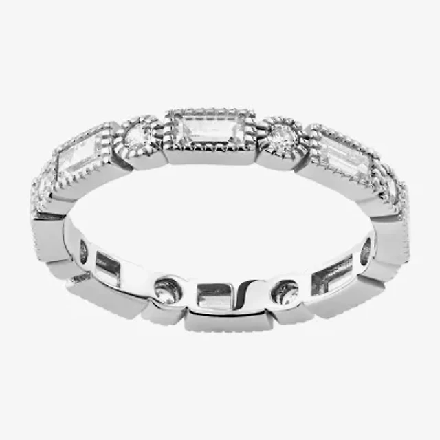 Silver Treasures Womens Cubic Zirconia Sterling Silver Band