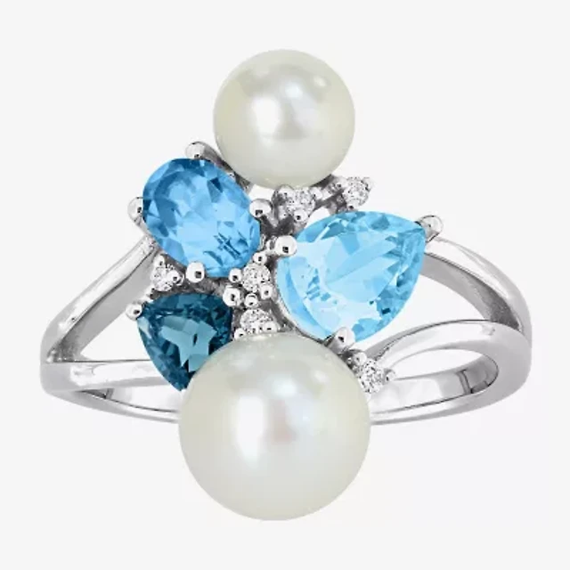 Womens Diamond Accent White Cultured Freshwater Pearl Sterling Silver Cocktail Ring
