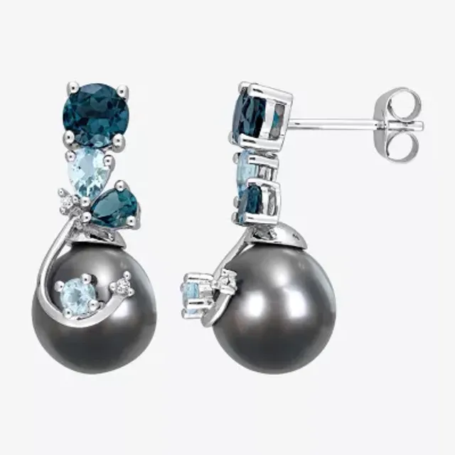 Womens Diamond Accent Black Cultured Tahitian Pearl 14K White Gold Drop Earrings