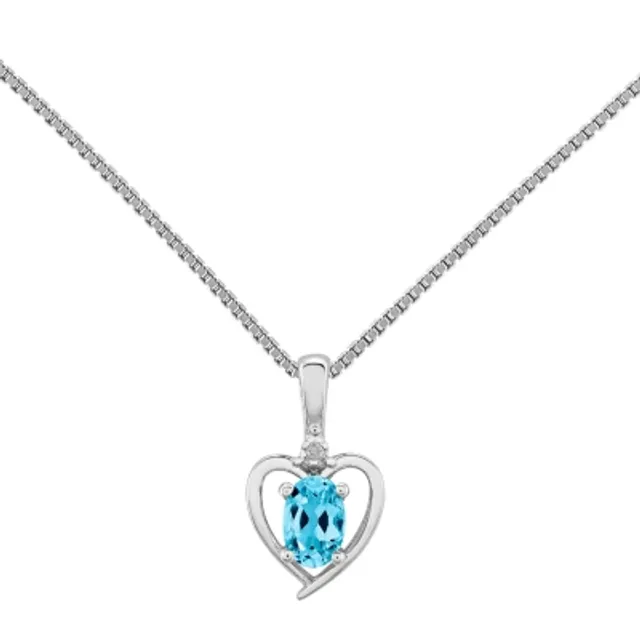 Womens Diamond Accent Genuine Blue Topaz Sterling Silver Heart Pendant Necklace