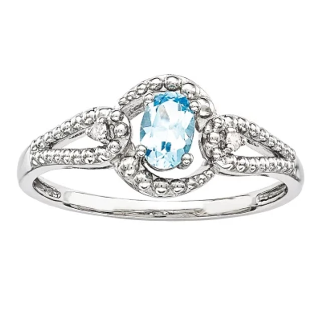 Womens Diamond Accent Genuine Blue Topaz Sterling Silver Oval Halo Cocktail Ring