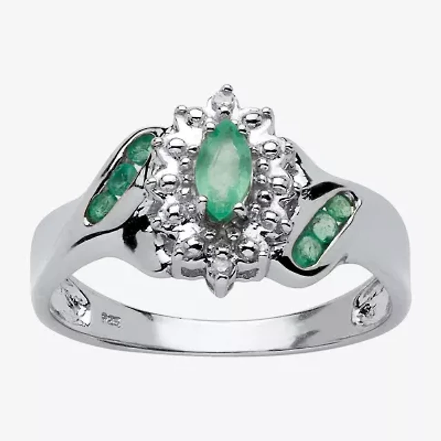 Womens Diamond Accent Genuine Green Emerald Platinum Over Silver Marquise Halo Cocktail Ring