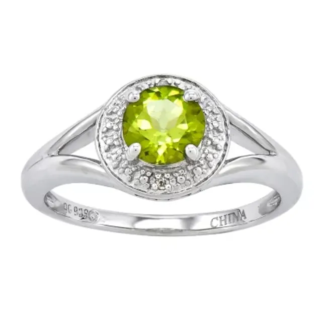 Womens Diamond Accent Genuine Green Peridot Sterling Silver Round Halo Cocktail Ring