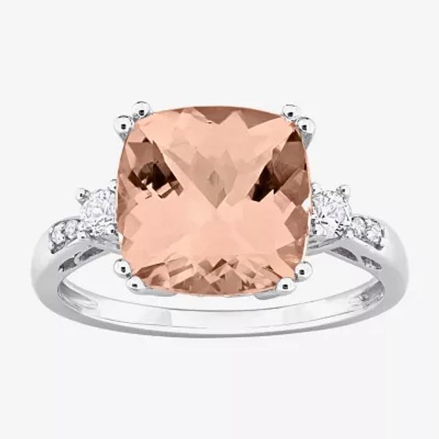 Womens Diamond Accent Genuine Pink Morganite 10K White Gold Cushion Cocktail Ring