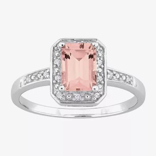 Womens Diamond Accent Genuine Pink Morganite Sterling Silver Halo Cocktail Ring