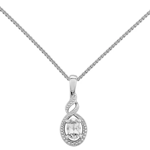 Womens Diamond Accent Genuine White Topaz Sterling Silver Oval Pendant Necklace