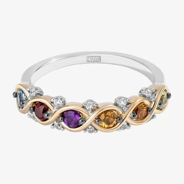 Womens Diamond Accent Genuine Yellow Citrine 14K Gold Over Silver Marvel 5-Stone Band