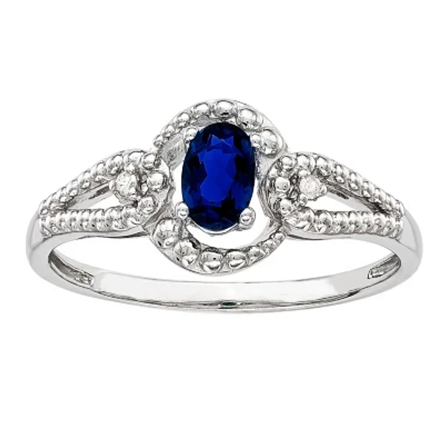 Womens Diamond Accent Lab Created Blue Sapphire Sterling Silver Oval Promise Ring