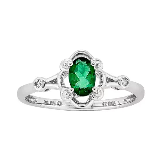 Womens Diamond Accent Lab Created Green Emerald Sterling Silver Oval Delicate Cocktail Ring