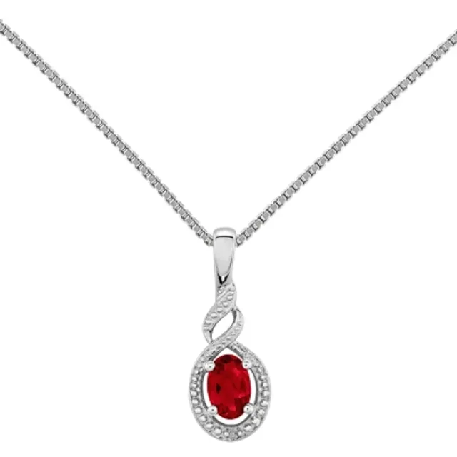 Womens Diamond Accent & Lab Created Ruby Sterling Silver Pendant Necklace
