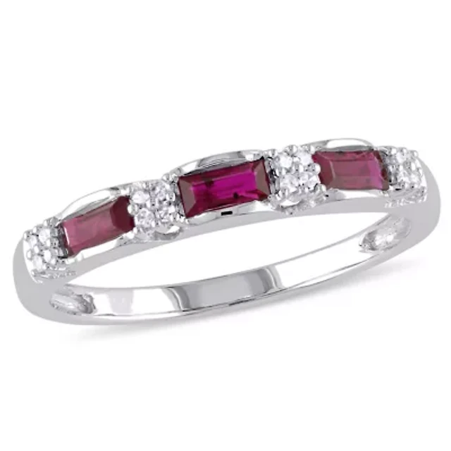 Womens Diamond Accent Lead Glass-Filled Red Ruby 10K White Gold Stackable Ring