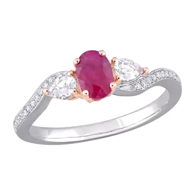 Womens Diamond Accent Lead Glass-Filled Red Ruby 14K Two Tone Gold 3-Stone Cocktail Ring