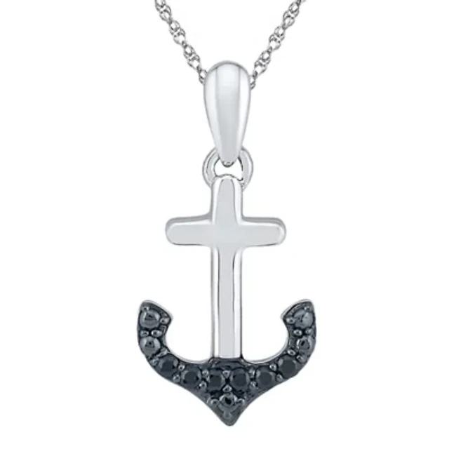 Womens Diamond Accent Natural Black Diamond Sterling Silver Anchor 18 Inch Pendant Necklace