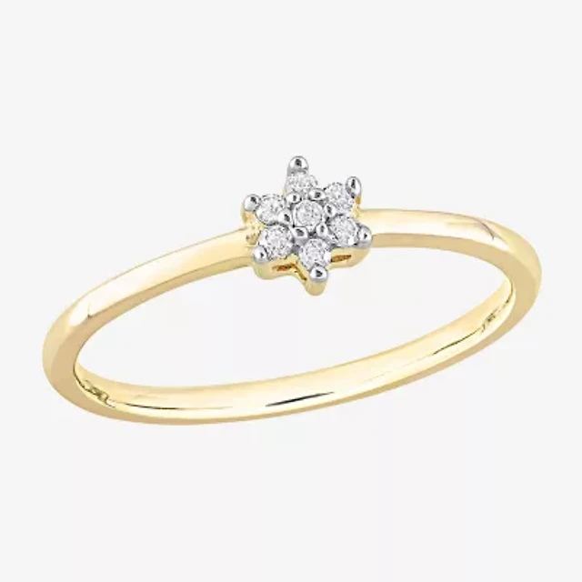 Womens 1/10 CT. T.W. Natural White Diamond 18K Gold Over Silver Flower Delicate Stackable Ring
