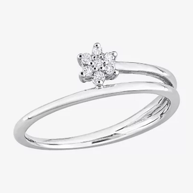 Womens Diamond Accent Natural White Sterling Silver Flower Delicate Stackable Ring