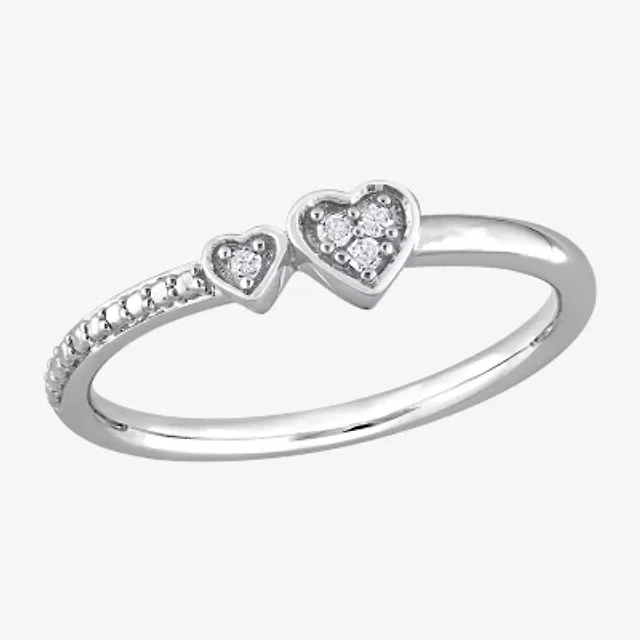 Womens Diamond Accent Natural White Sterling Silver Heart Delicate Stackable Ring