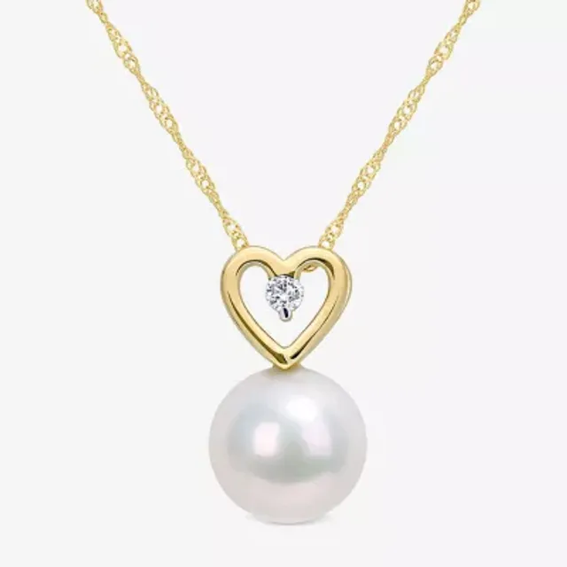 Womens Diamond Accent White Cultured Freshwater Pearl 10K Gold Heart Pendant Necklaces