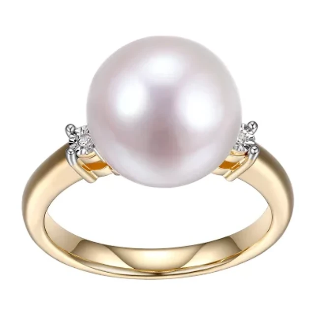 Womens Diamond Accent 4MM White Cultured Freshwater Pearl 14K Gold Cocktail Ring