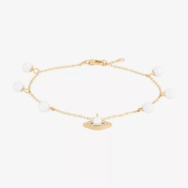 Womens Dyed White Cultured Freshwater Pearl 14K Gold Over Silver Evil Eye Charm Bracelet