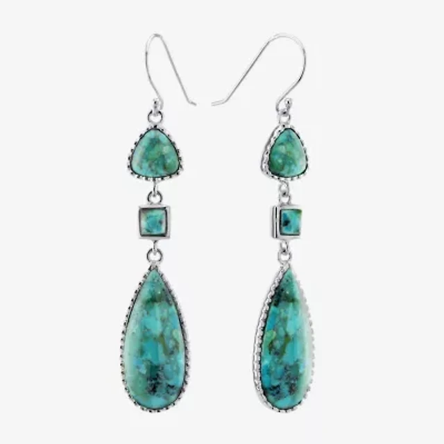 Silver Treasures Enhanced Womens Blue Turquoise Sterling Silver Drop Earrings