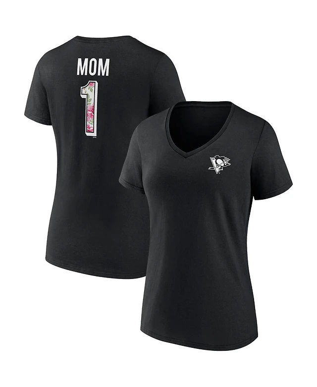 Women's Fanatics Black Pittsburgh Penguins Team Mother's Day V-Neck T-shirt