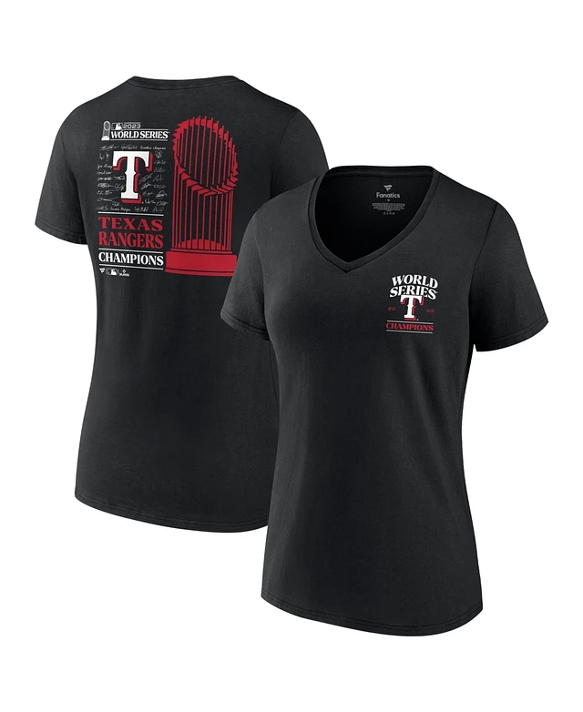 Women's Fanatics Black Texas Rangers 2023 World Series Champions Signature Roster V-Neck T-shirt