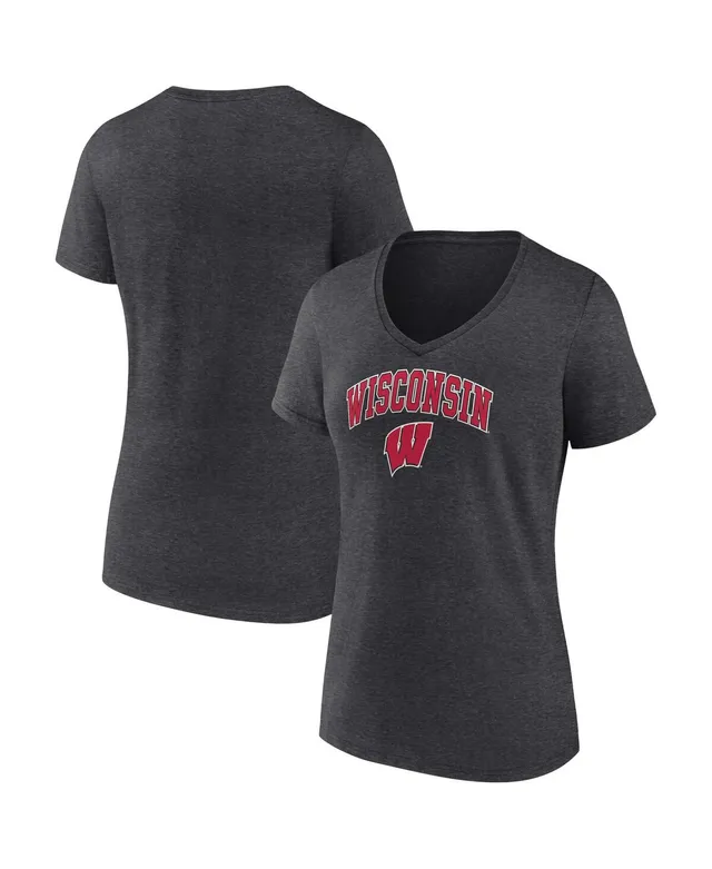 Women's Fanatics Heather Charcoal Wisconsin Badgers Evergreen Campus V-Neck T-shirt