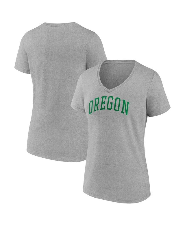 Women's Fanatics Heather Gray Oregon Ducks Basic Arch V-Neck T-shirt