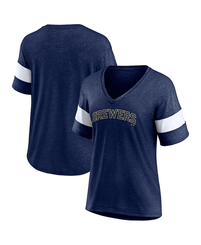 Women's Fanatics Heathered Navy Milwaukee Brewers Wordmark V-Neck Tri-Blend T-shirt