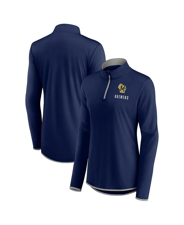 Women's Fanatics Navy Milwaukee Brewers Worth The Drive Quarter-Zip Jacket