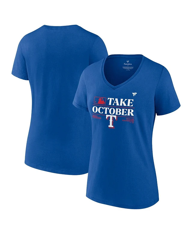 Women's Fanatics Royal Texas Rangers 2023 Postseason Locker Room V-Neck T-shirt