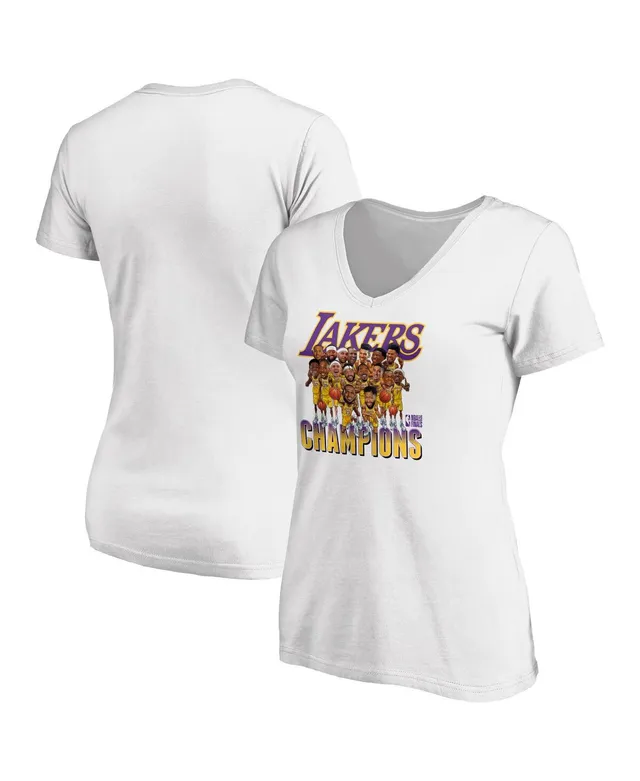 Women's Fanatics White Los Angeles Lakers 2020 Nba Finals Champions Team Caricature V-Neck T-shirt