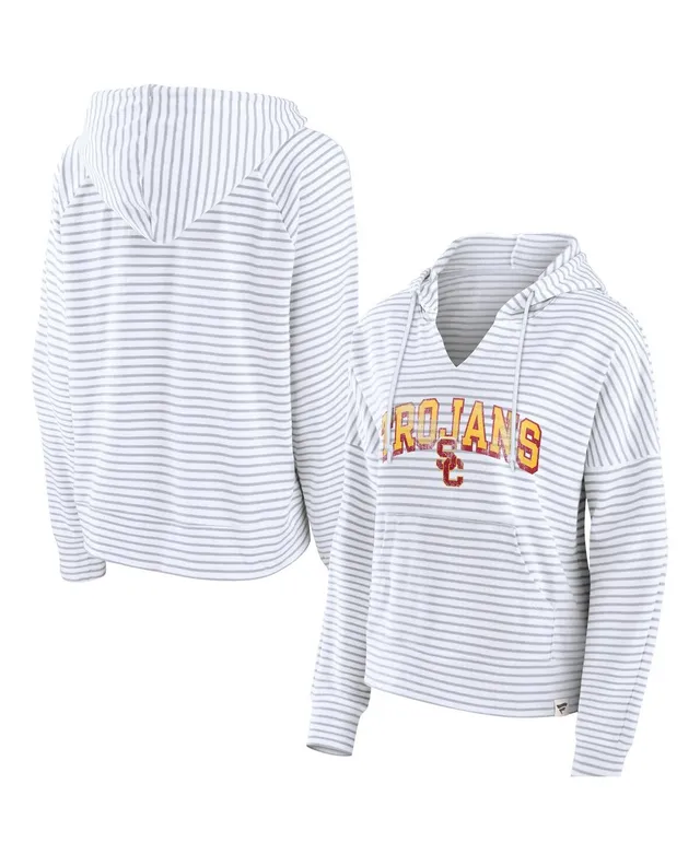 Women's Fanatics White Usc Trojans Striped Notch Neck Pullover Hoodie