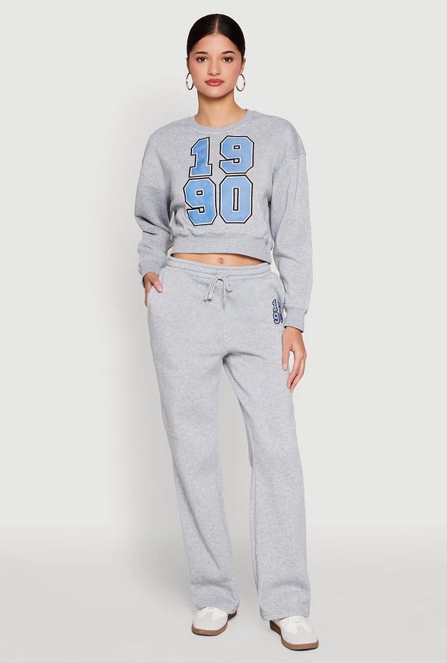 Womens Fleece Graphic Drawstring Sweatpants, Grey, Size M
