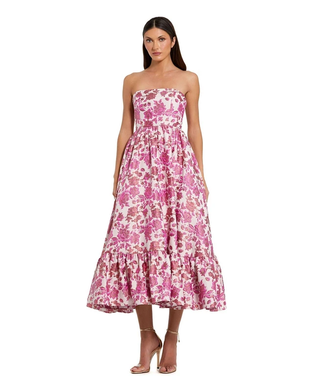 Mac Duggal Women's Strapless Floral Brocade A Line Midi Dress