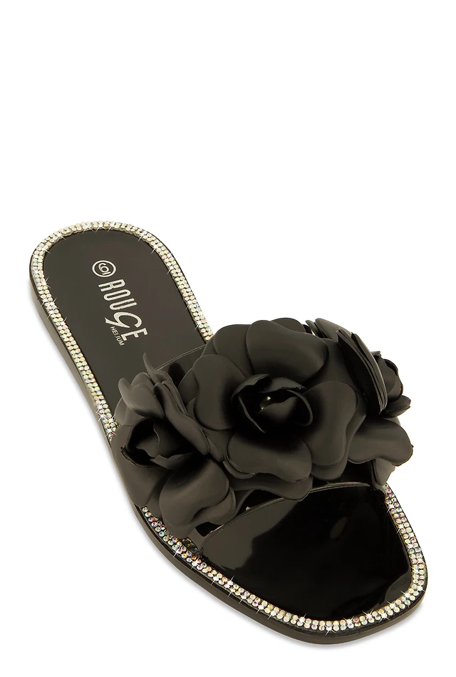 Womens Flower Band Jelly Slide Sandals, Black, Size 6