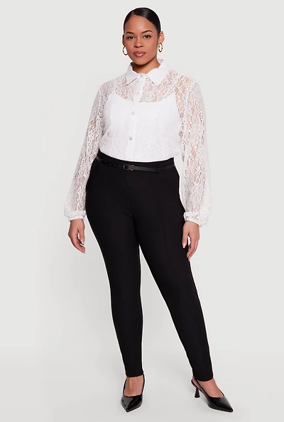 Womens Fold Over Pintuck Dress Pants, Black, Size M