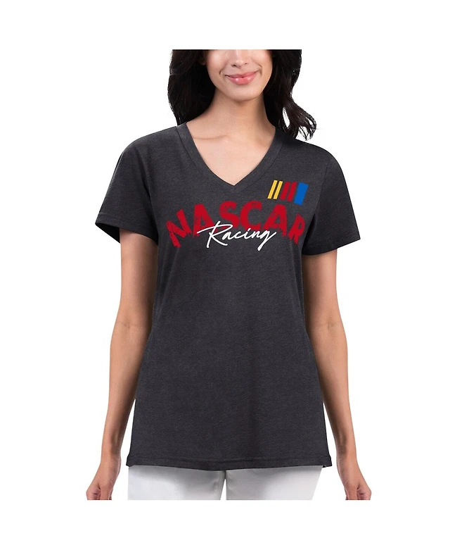 Women's G-iii 4Her by Carl Banks Black Distressed Nascar Key Move V-Neck T-shirt
