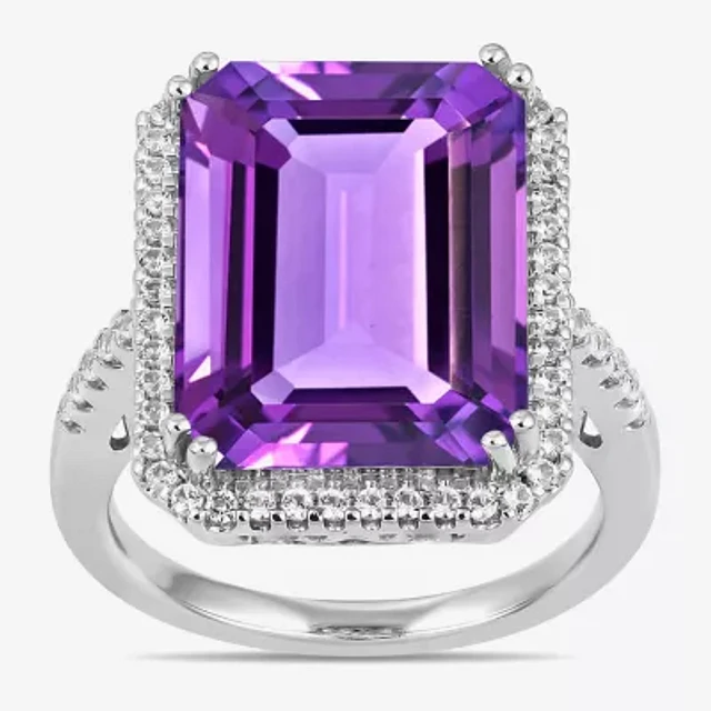 Womens Lab Created Gemstone Sterling Silver Halo Cocktail Ring