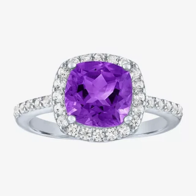 Womens Lab Created Purple Amethyst Sterling Silver Cushion Halo Cocktail Ring