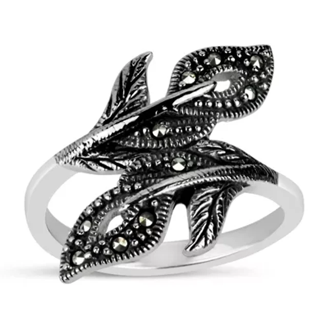 Womens Genuine Black Marcasite Sterling Silver Bypass Cocktail Ring