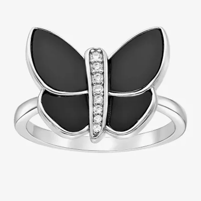 Womens Genuine Black Onyx Sterling Silver Butterfly Cocktail Ring