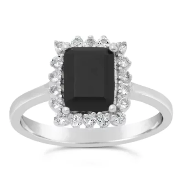 Womens Genuine Black Onyx Sterling Silver Cocktail Ring