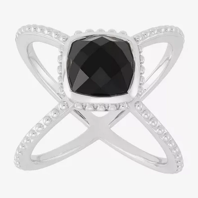 Womens Genuine Black Onyx Sterling Silver Cushion Crossover Cocktail Ring