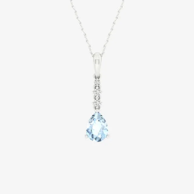 Womens Genuine Blue Aquamarine Sterling Silver Pear Pendant Necklace