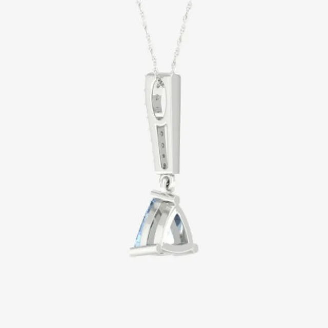 Womens Genuine Blue Aquamarine Sterling Silver Triangle Pendant Necklace
