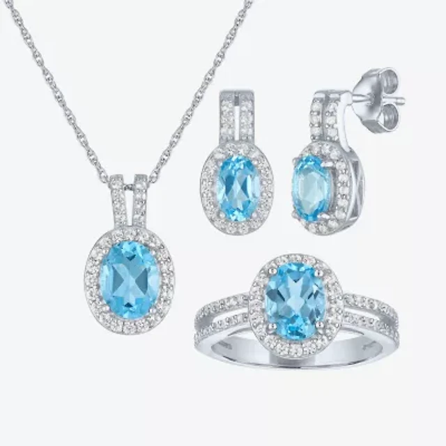 Womens Genuine Blue Topaz Sterling Silver 3-pc. Jewelry Set