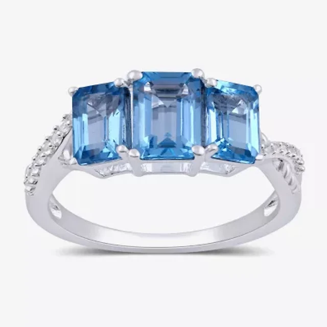 Womens Genuine Blue Topaz Sterling Silver 3-Stone Crossover Cocktail Ring