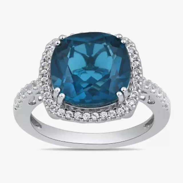 Womens Genuine Blue Topaz Sterling Silver Cushion Cocktail Ring